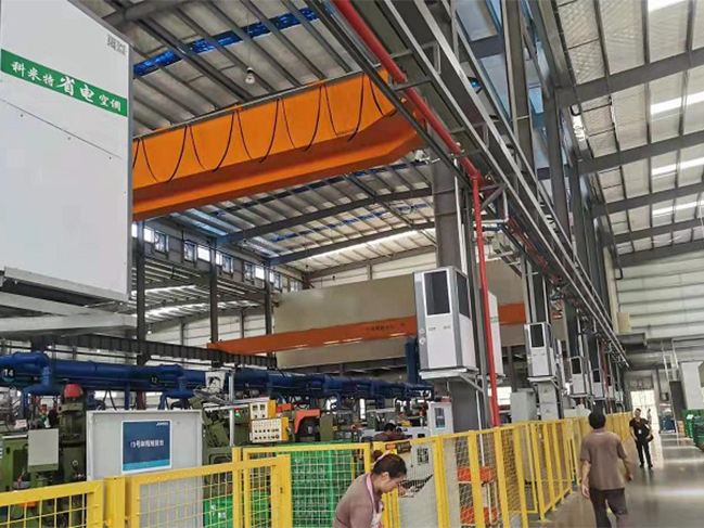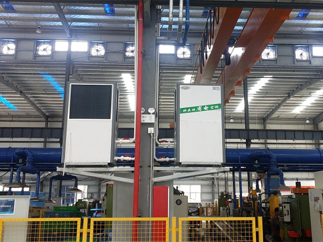 1.省電(diàn)空(kōng)調選型:由于車(chē)間(jiān)有(yǒ×™u)上(shàng)有(yǒu)行(xíπ<∑≤ng)(hang )車(chē)運行(xíng),不(bù)能(né×€ng)裝風(fēng)管,并且車(chē)間(jiān)沒有(yǒu)吊頂 ≠₹,故選擇大(dà)風(fēng)量直吹機(jī)≥©KMT-160S ,吊挂安裝。