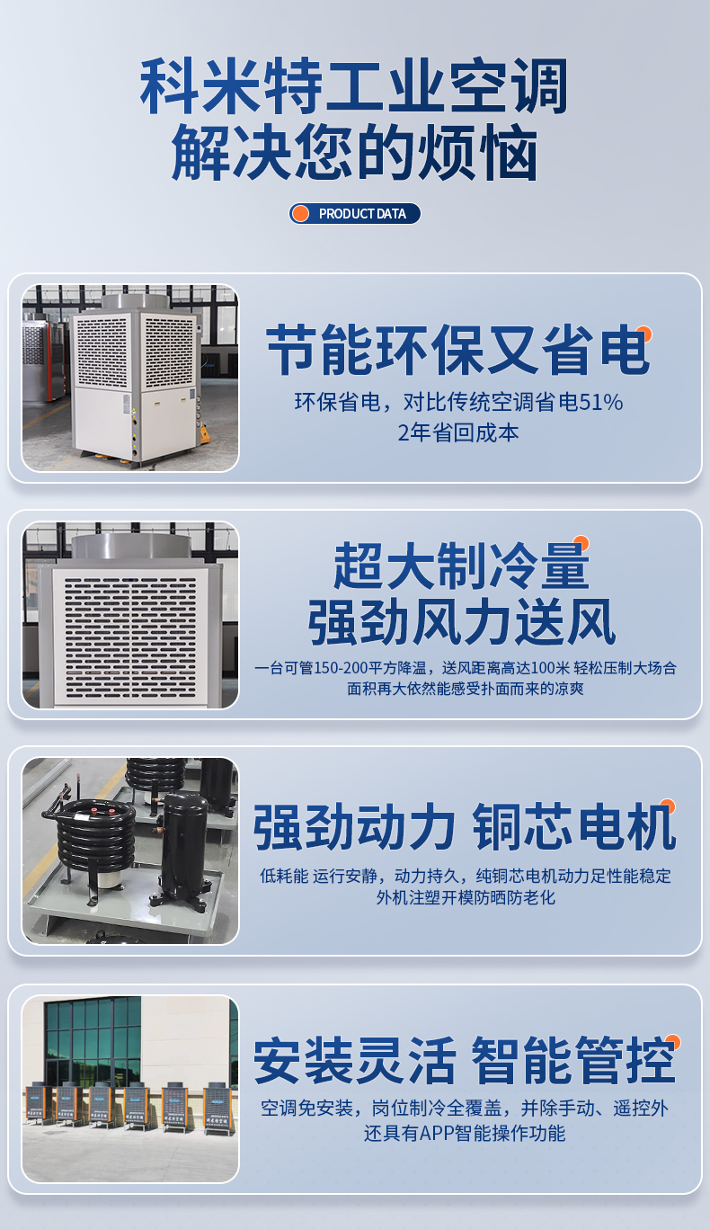 大(dà)風(fēng)量設計(jì),一(yī)台可∞∏(kě)覆蓋降溫面積300-400平方連接風(fēng)管,車(chē)間(jiān)各個(g♠≠‌£è)角落送風(fēng)無憂